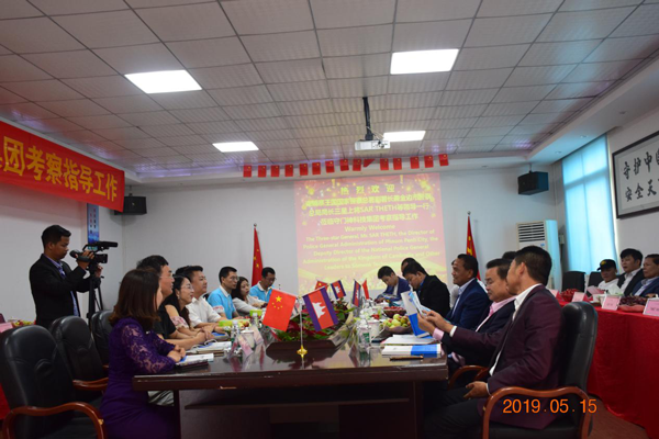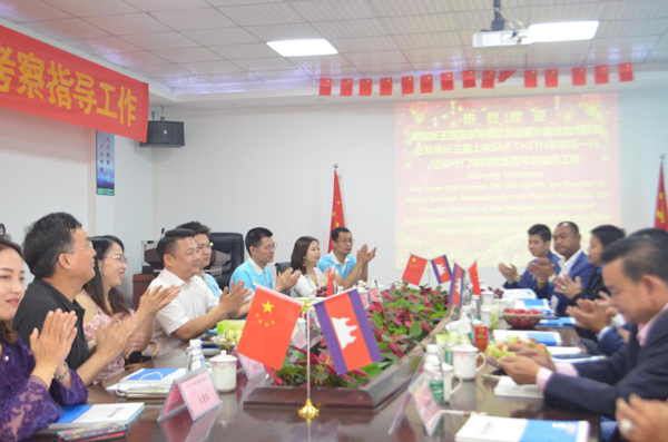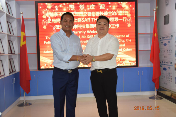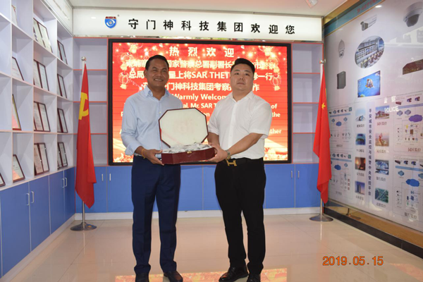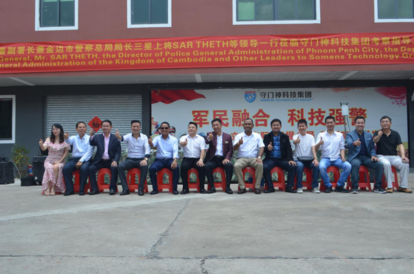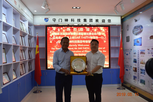 2019年5月15日,柬埔寨佛歷2562年六月十二日,天氣晴朗,清風(fēng)徐來(lái)。應(yīng)廣東守門(mén)神科技集團(tuán)有限公司董事長(zhǎng)孟豪先生邀請(qǐng),柬埔寨王國(guó)國(guó)家警察總署副署長(zhǎng)兼金邊市警察總局局長(zhǎng)、三星上將蘇通閣下率代表團(tuán)蒞臨守門(mén)神科技集團(tuán)考察,隨同考察的有柬方警察總局副局長(zhǎng)BENG DANARA、刑事犯罪局局長(zhǎng)BON SATTYA、交通道路局局長(zhǎng)SEM KUNTHEA、總局長(zhǎng)助理MENG HUY及IT主任等近二十人,柬方代表團(tuán)的到訪受到了廣東守門(mén)神科技集團(tuán)全廠管理人員的熱烈歡迎,并受到了集團(tuán)董事長(zhǎng)孟豪先生、總經(jīng)理王春麗女士的親切接待。