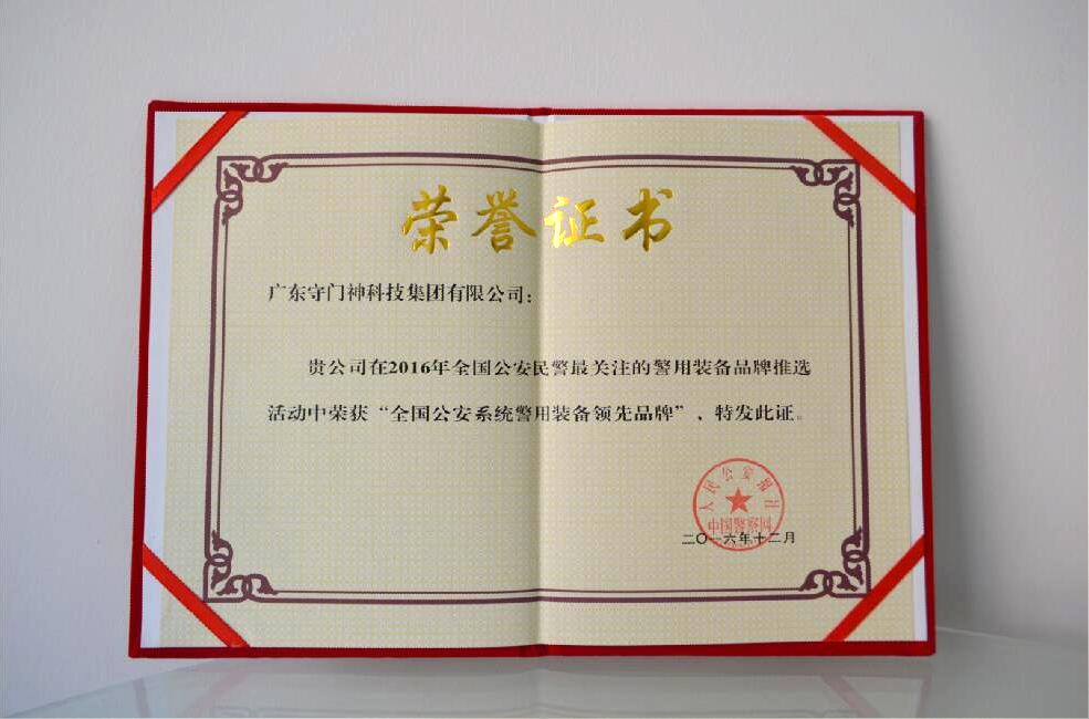 守門(mén)神科技集團(tuán)獲得全國(guó)公安系統(tǒng)警用裝備領(lǐng)先品牌榮譽(yù)證書(shū)