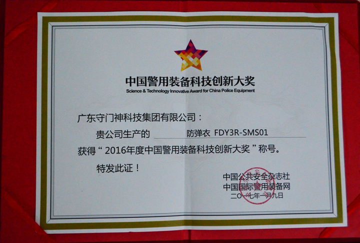守門神科技集團(tuán)憑借強(qiáng)大的技術(shù)研發(fā)、運(yùn)營實(shí)力和創(chuàng)新精神在眾多企業(yè)中脫穎而出,獲得評(píng)審委員會(huì)專家們的認(rèn)可,榮獲“2016年度中國警用裝備科技創(chuàng)新大獎(jiǎng)”榮譽(yù)稱號(hào)!