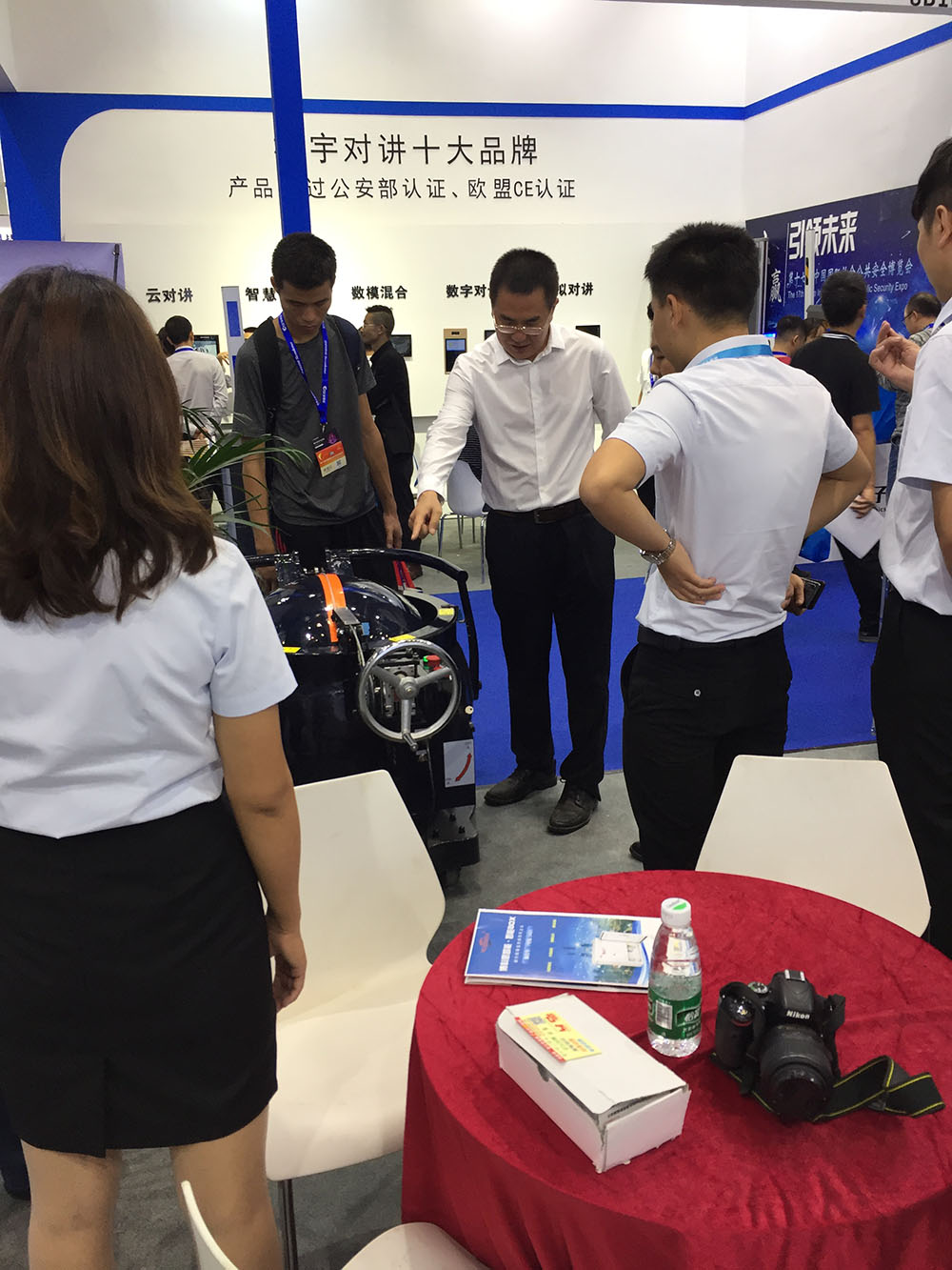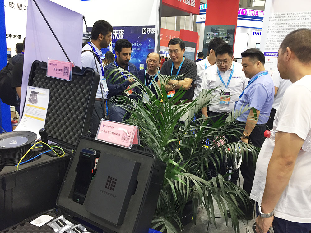 由我司研發(fā)的導(dǎo)線切割器及手持式爆炸物分析師也備受觀展者青睞,大家紛紛咨詢工作原理及設(shè)備性能,上圖為守門神科技集團工作人員為觀展者做耐心解答及現(xiàn)場演示。