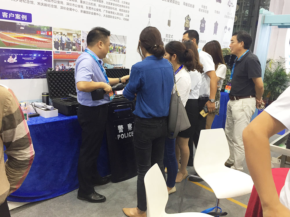 ▲我司參展工作人員為觀展者介紹安檢機安檢門
