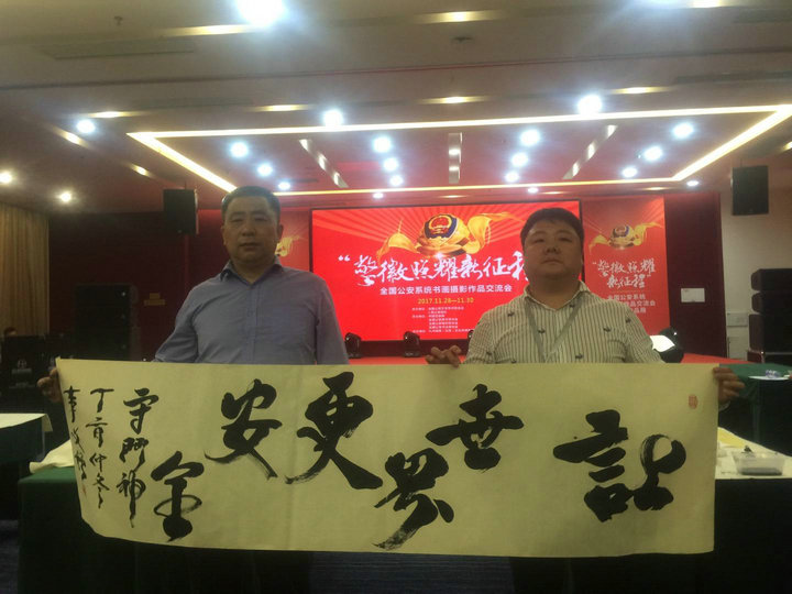 11月29日下午參加全國(guó)公安系統(tǒng)書畫攝影展的領(lǐng)導(dǎo)有:全國(guó)公安文聯(lián)副主席兼秘書長(zhǎng)楊錦、全國(guó)公安美協(xié)會(huì)副主席李冬、全國(guó)公安美協(xié)會(huì)副主席張國(guó)圖、全國(guó)公安攝協(xié)家協(xié)會(huì)主席馮凱文、副主席秘書長(zhǎng)于志剛、全國(guó)公安書法家協(xié)會(huì)主席李忠信,以及來自全國(guó)各省公安廳、廣東省廳、深圳市公安局局、兵團(tuán)、鐵路公安、各市縣局相關(guān)領(lǐng)導(dǎo)等100多人出席此次活動(dòng),感謝山西公安廳丁志主任、桂林市公安局李書記分別為公司提字"守門神”、"讓世界更安全”。
